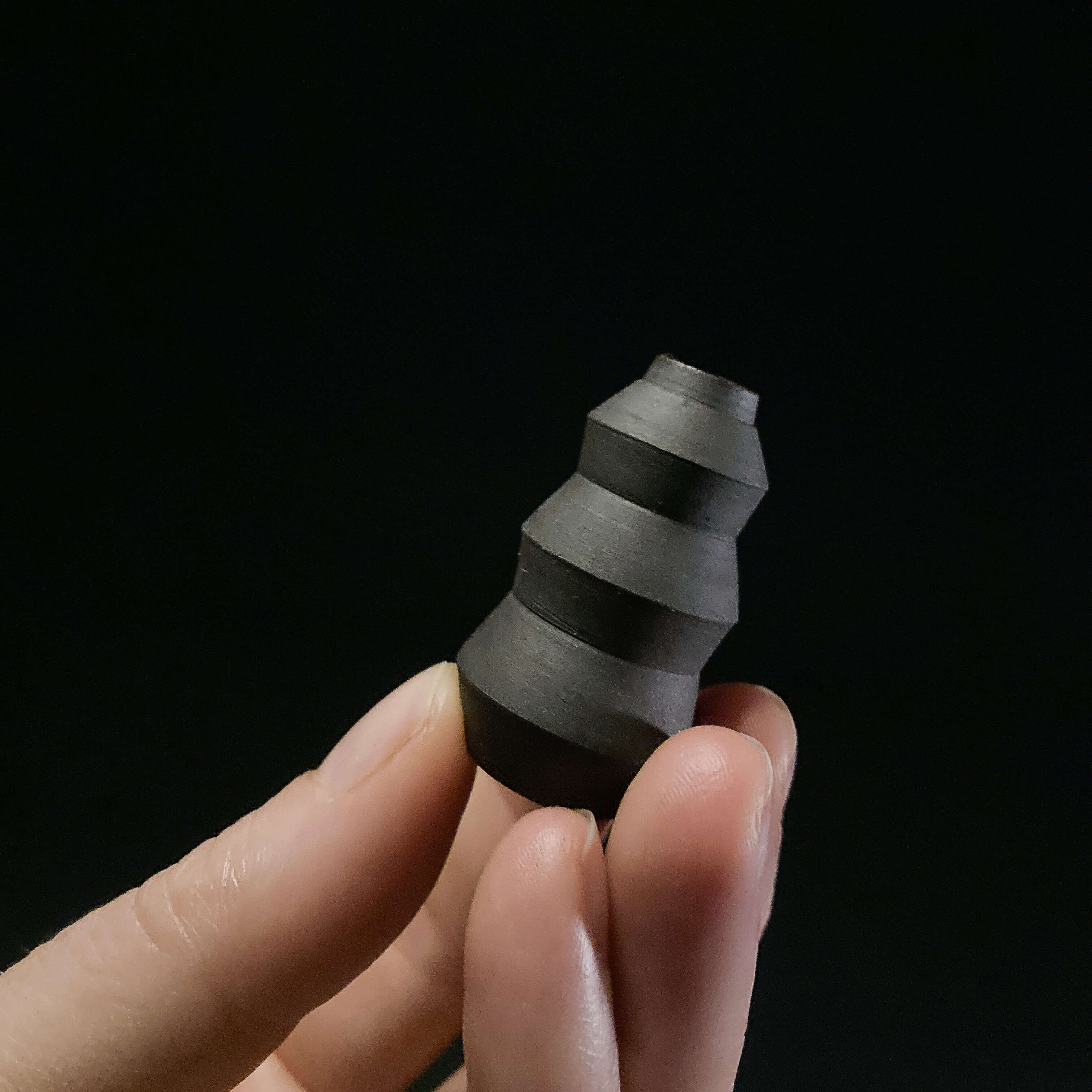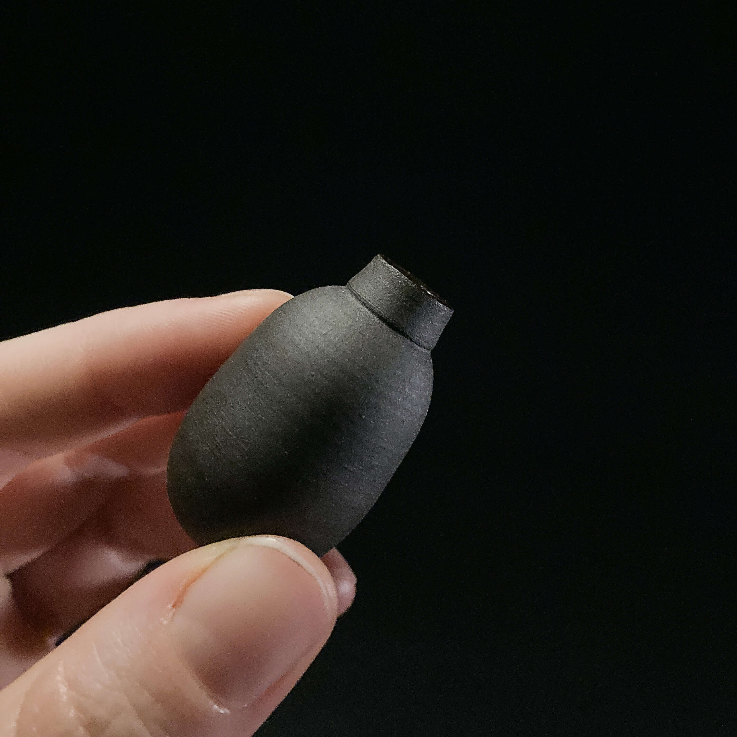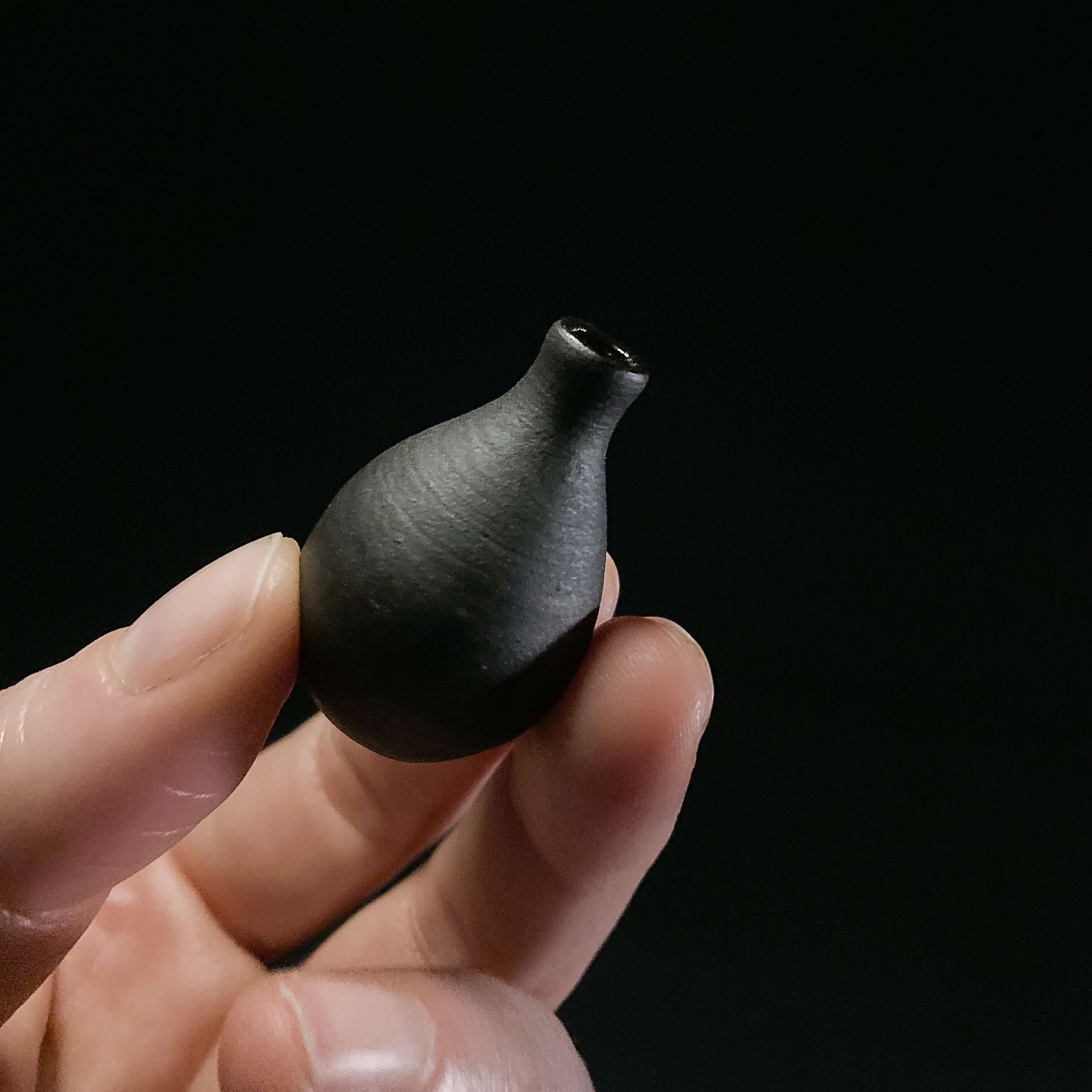 Vases in dark stoneware clay. Entire interior is coated with the same dark, glossy glaze; exterior is left unglazed and lightly sanded. Corks are available as an optional add-on, and fitted for the vases.