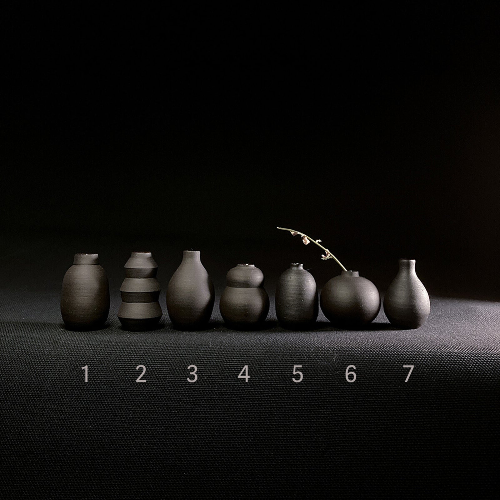 Price listed is for any individual, available tiny pot of the series, labeled 1-7 for reference, left to right; each is one of a kind. All are individually wrapped, packaged and boxed as gifts.