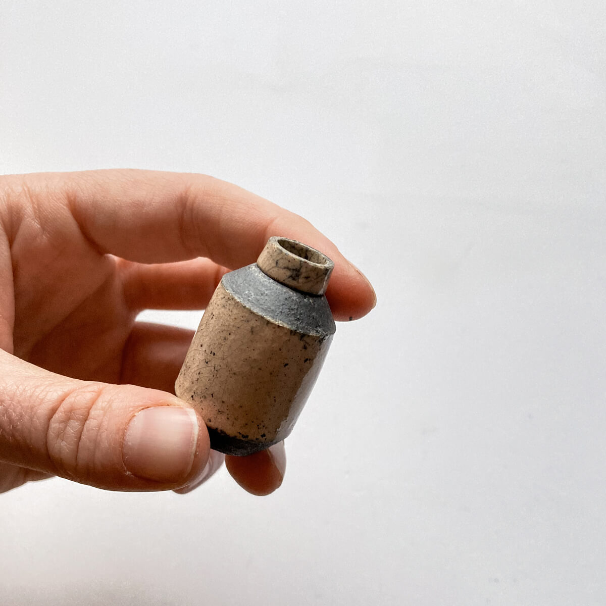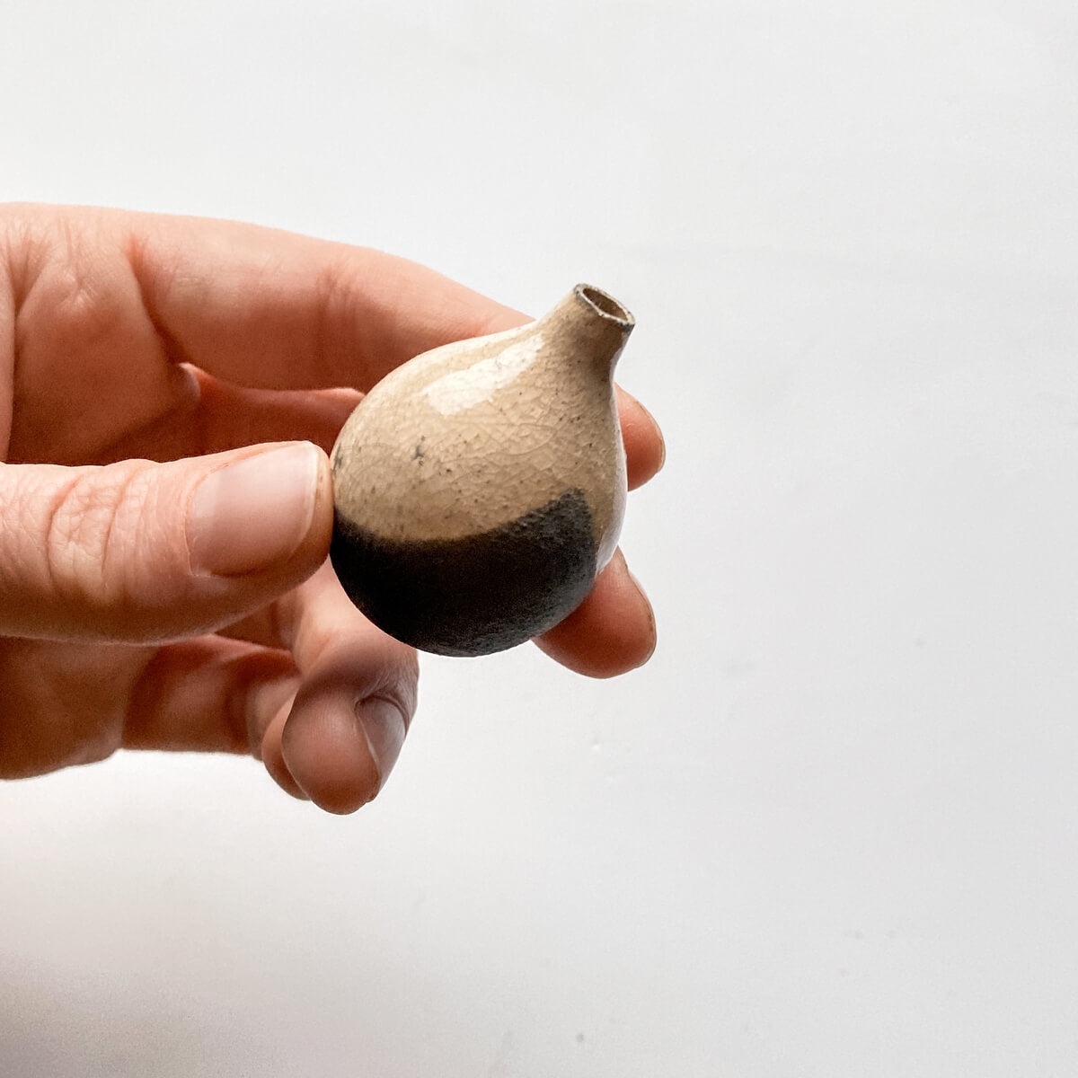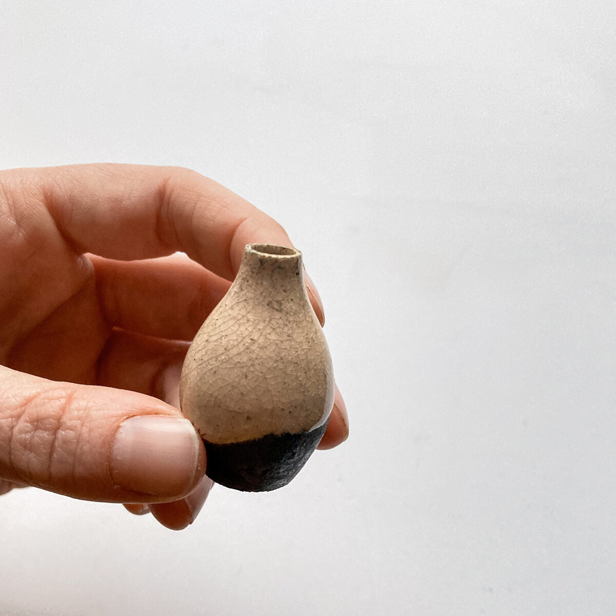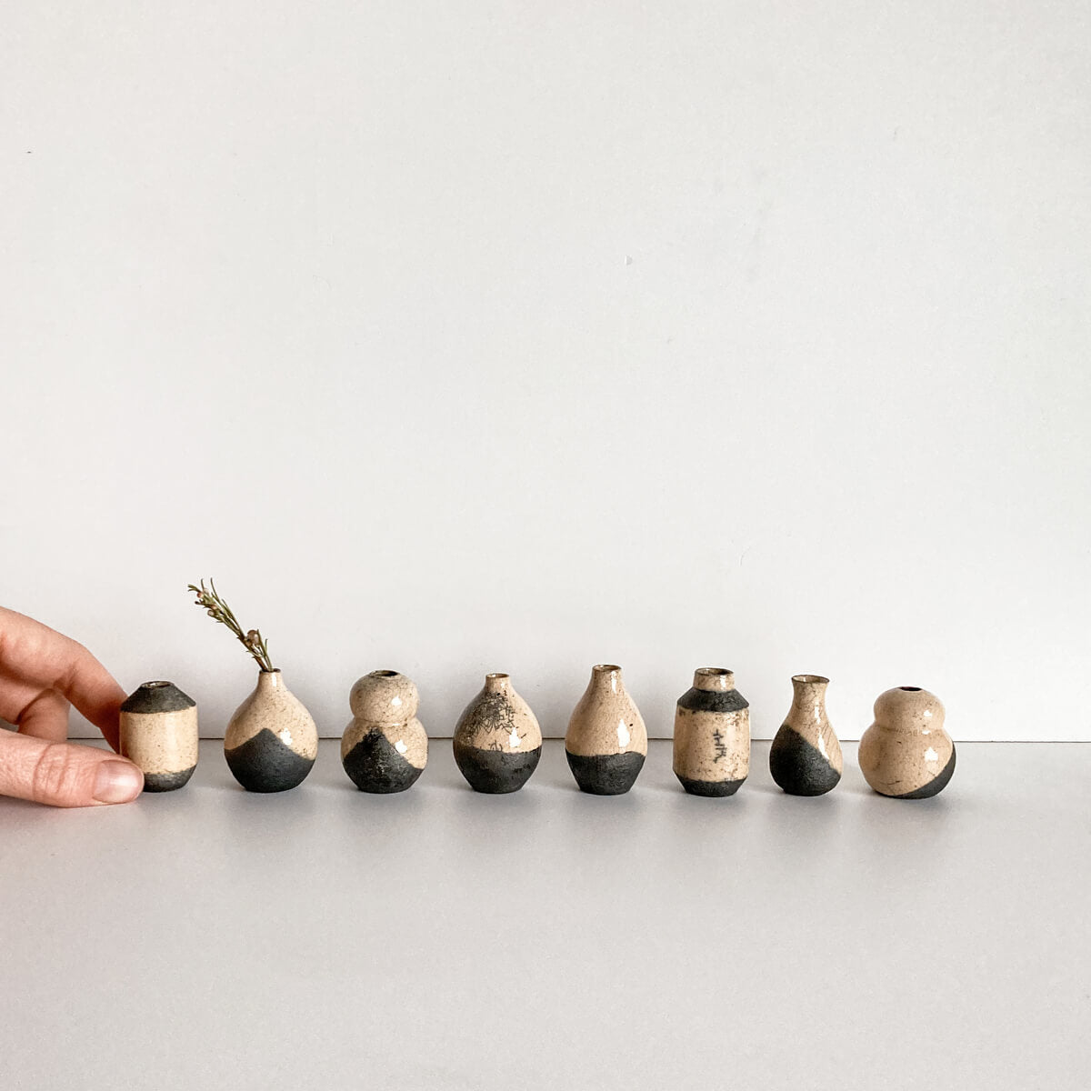 Wheel thrown on our tiny pottery wheel & kiln fired, so they all hold water, although most times we like to adorn them with little dried floral findings.