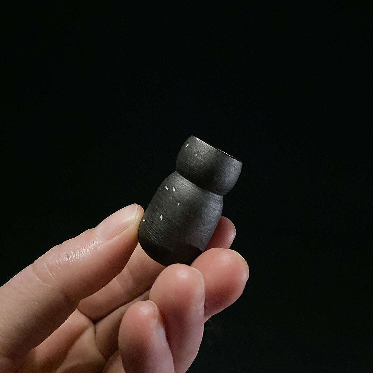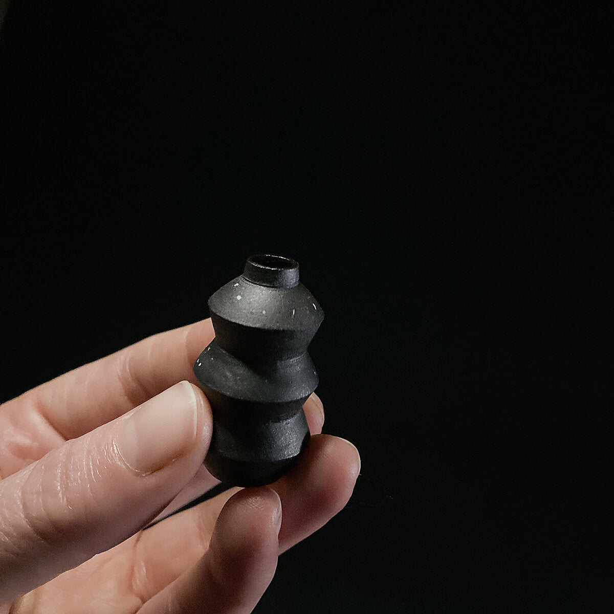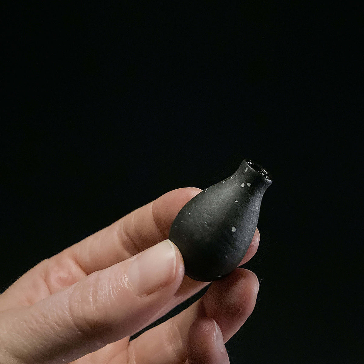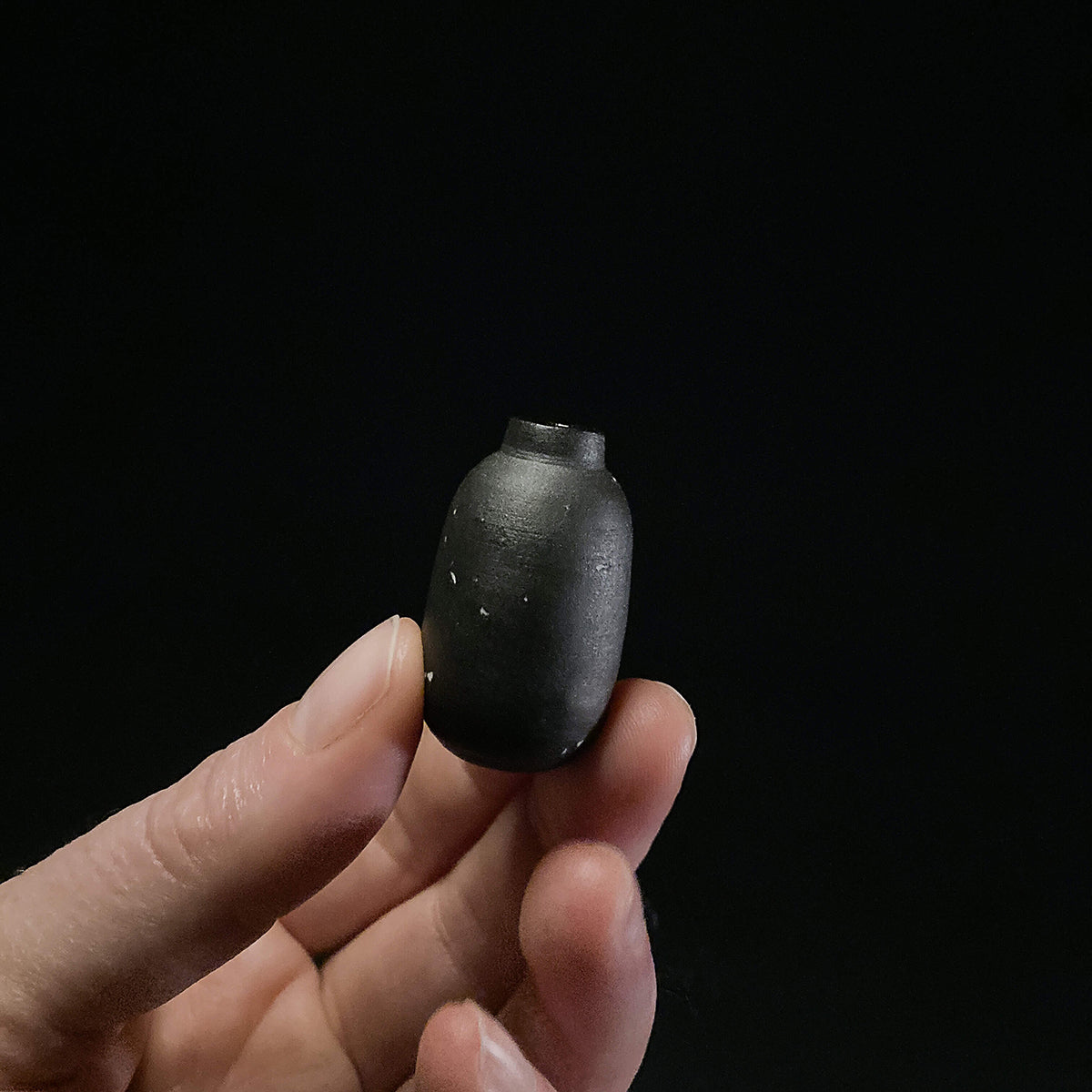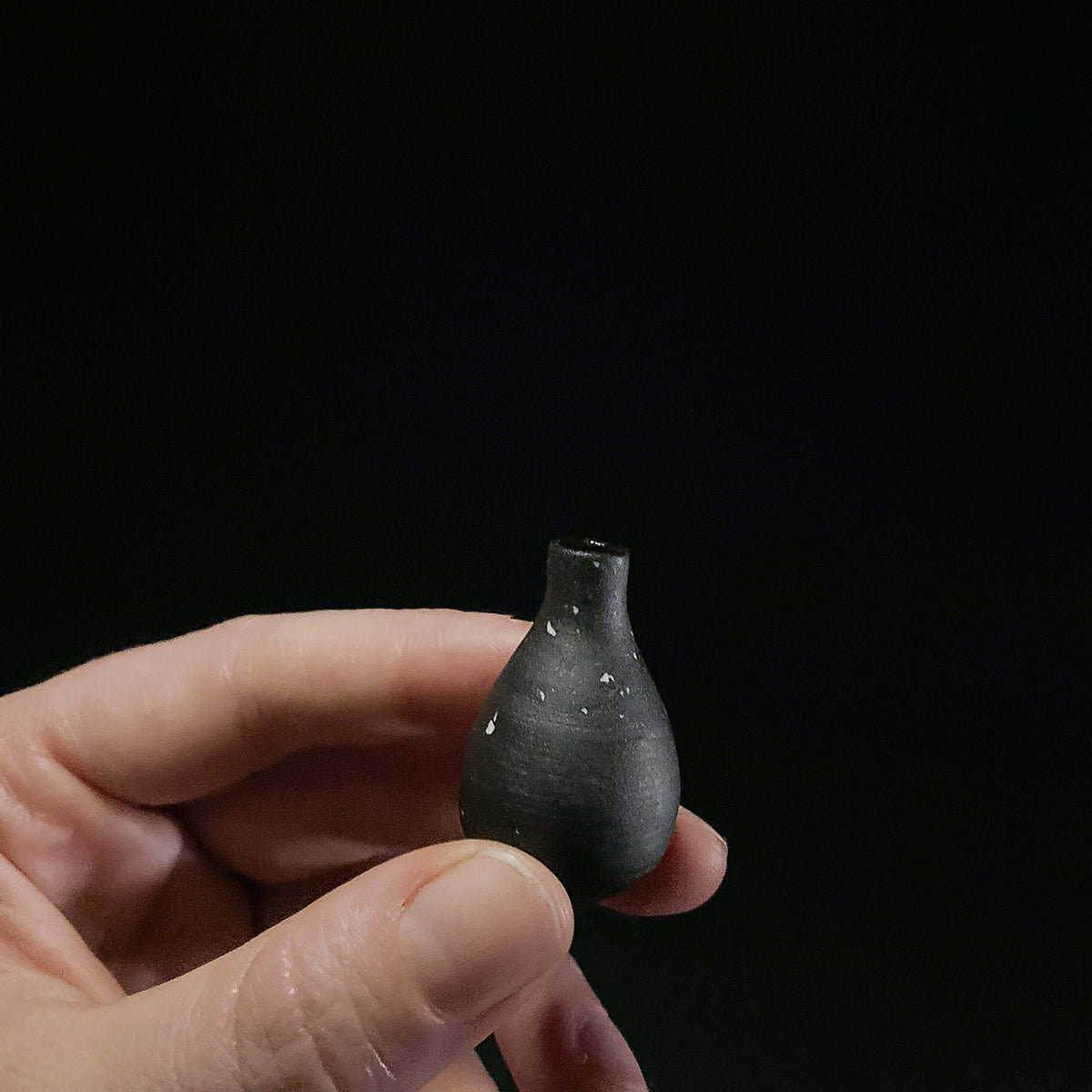 Vases in dark stoneware with speckles of porcelain as stars. Entire interior is coated in the same dark, glossy glaze. Corks are available as an optional add-on, and fitted for the vases.